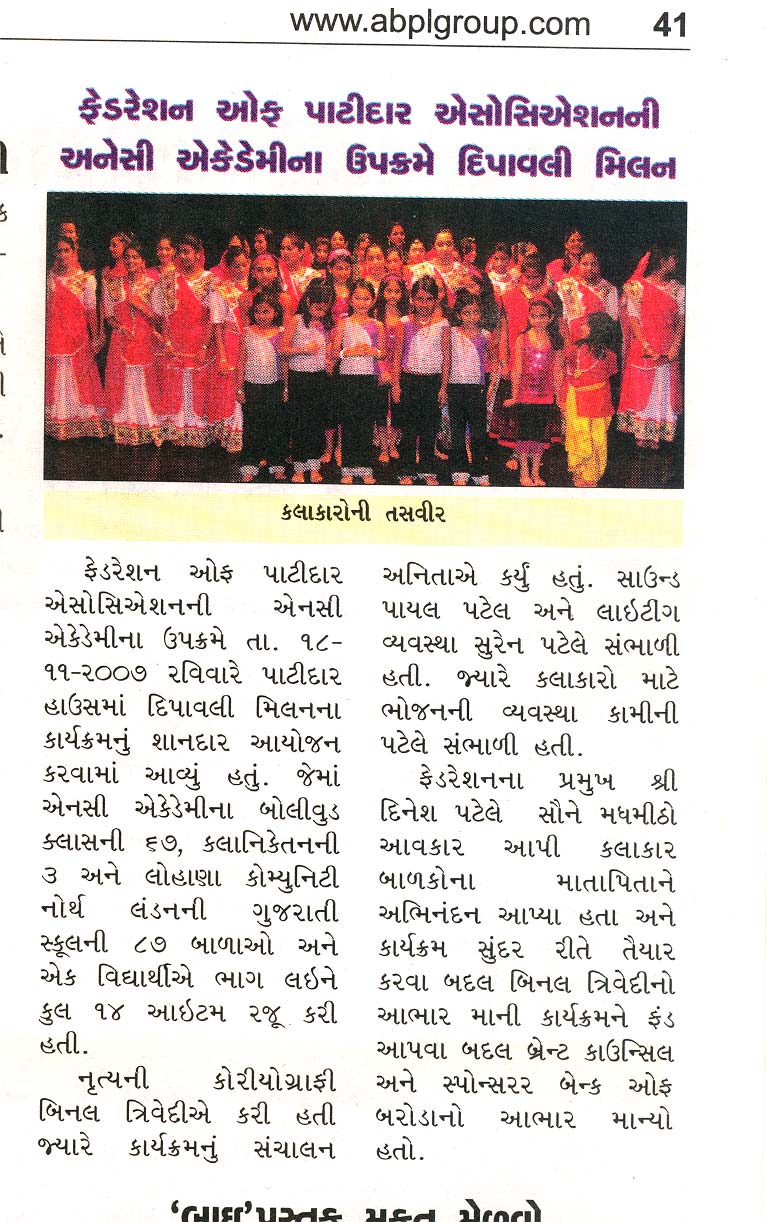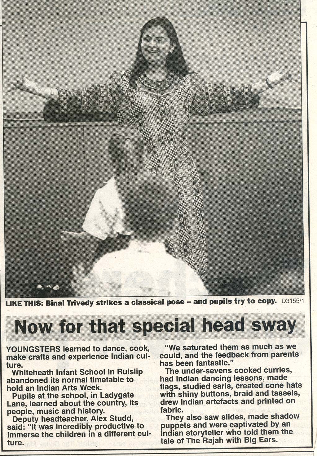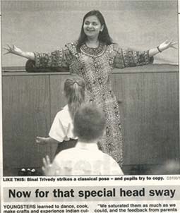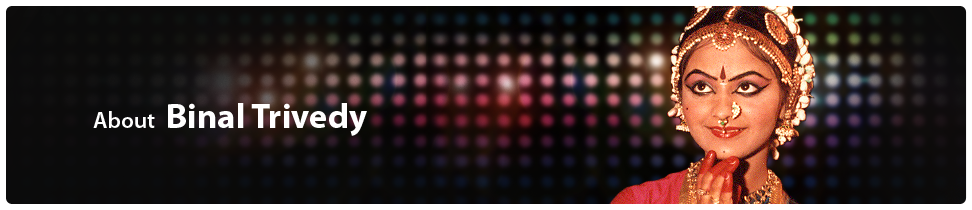 Binal Trivedy started taking intensive training from the age of 5 in Bharatanatyam by great Guru Shrimati Smita Shastri at "Nartan School of classical dances" in Ahmedabad - Gujarat. At the young age of 15 Binal completed her arangetram in Bharatanatyam. She had some training in Kucchipudi from Guru Bhavna Dave at Bhavmurti School of classical dance in Gujarat. After classical training Binal took dip in enhancing the Indian Folk dance, fusion and Bollywood dance and had some training under Guru Bhavna Dave, Smurtiben Adatiya (Surnupoor dance group) and Mira Menon (Shree Payal dance group) in Gujarat.
